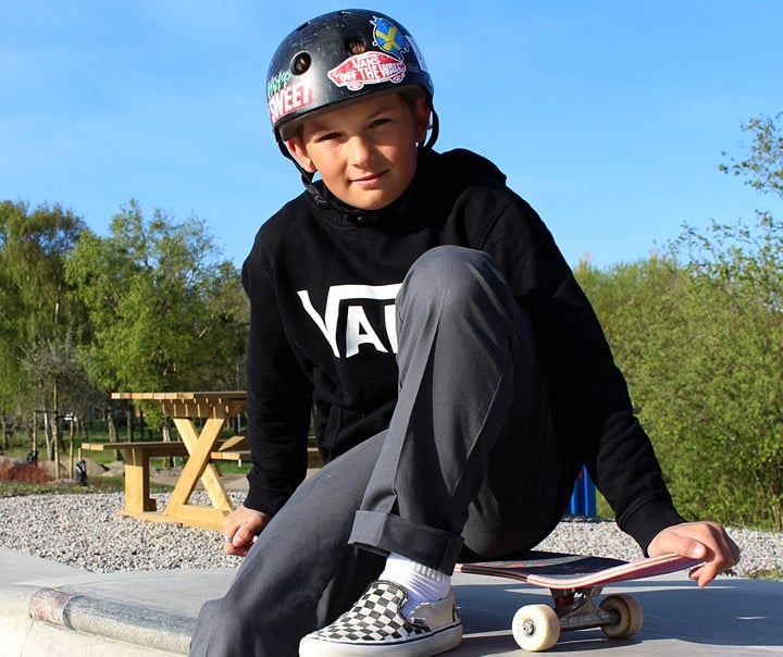 Today he’s one of the best junior skaters in the world. “I’m using the trampoline to learn tricks and to improve my body control for my skateboarding” he says.